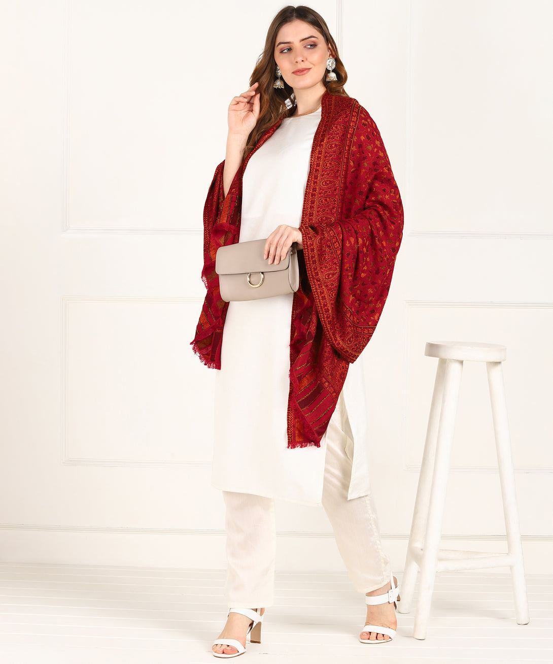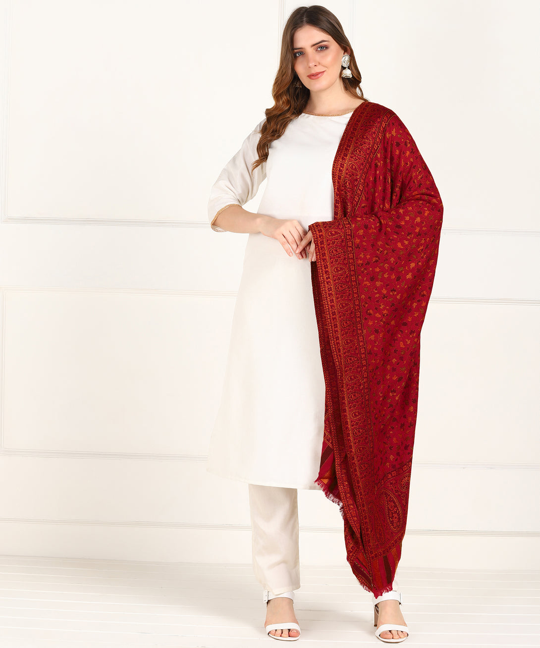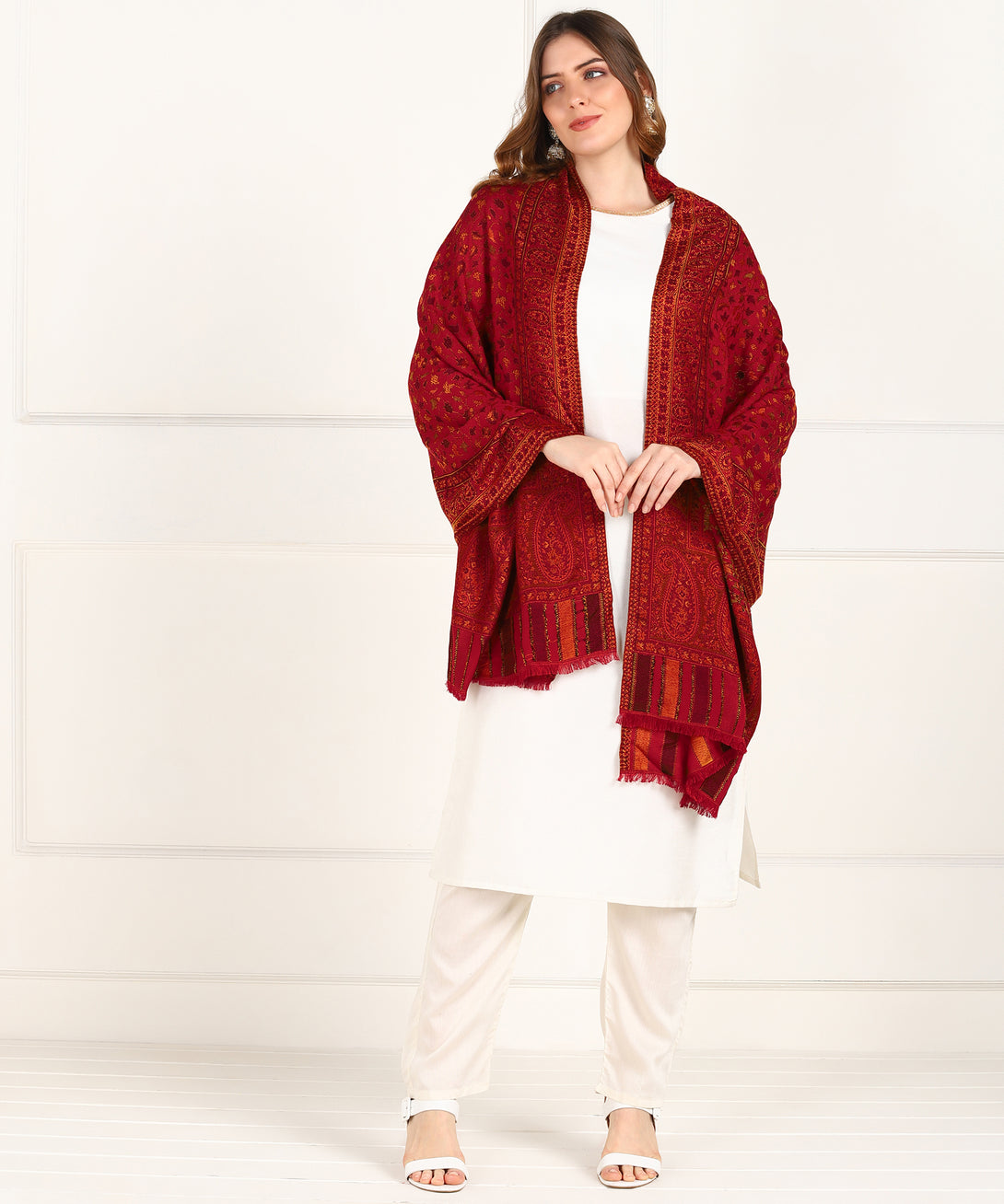 Jayri Women Pure Wool Shawl| Shawl For Women| Warm Woolen Winters Styles, Red