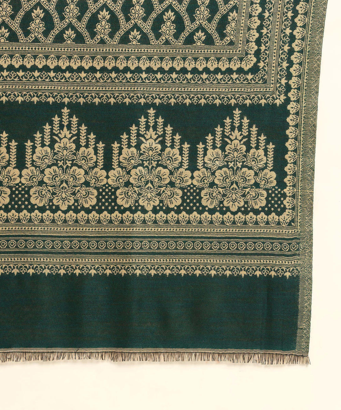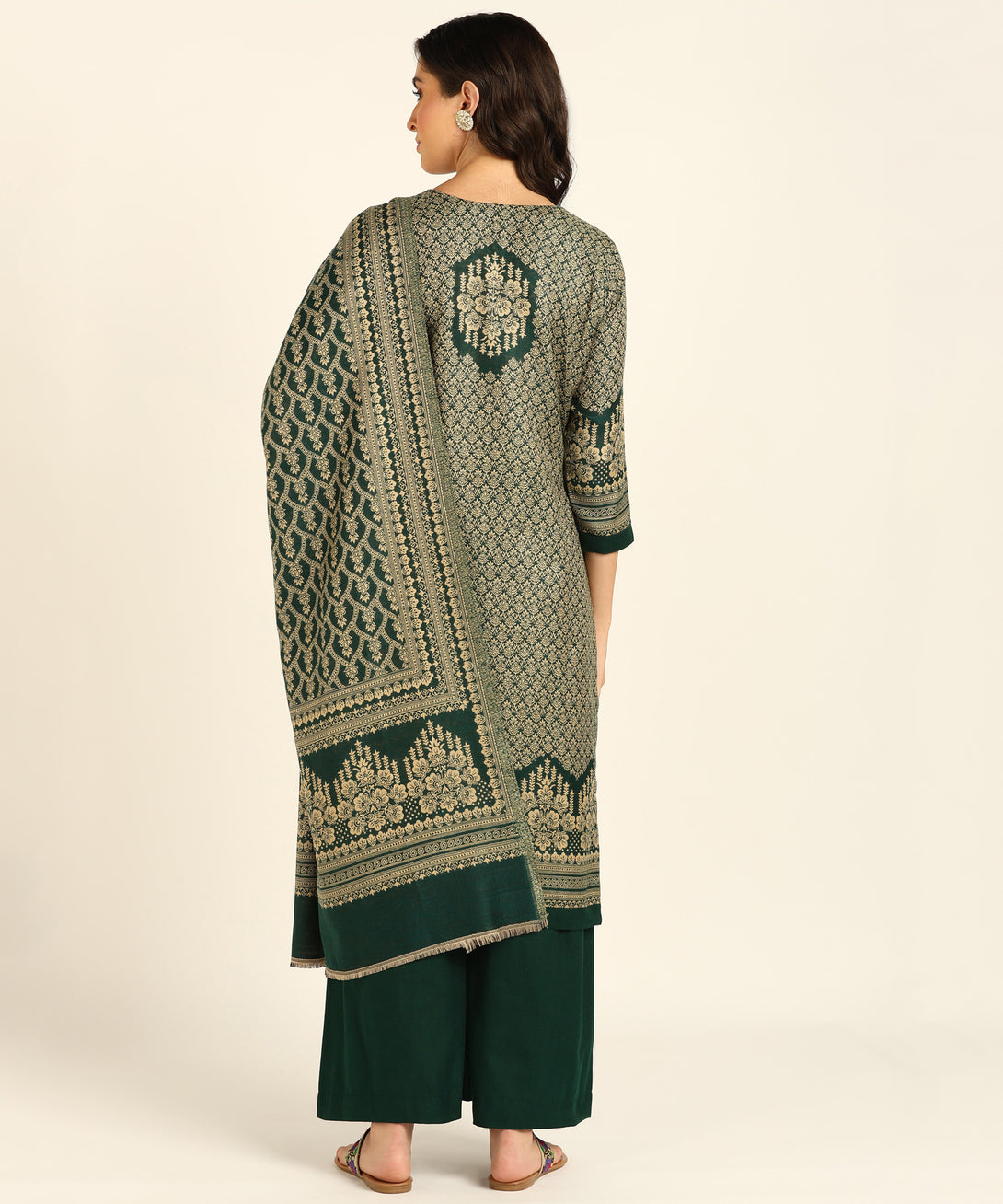 Jayri Women's Woolen Unstitched Kurta & Palazzo Kani Jamawar Design Suit Material with Shawl for Winter (Dark Green)