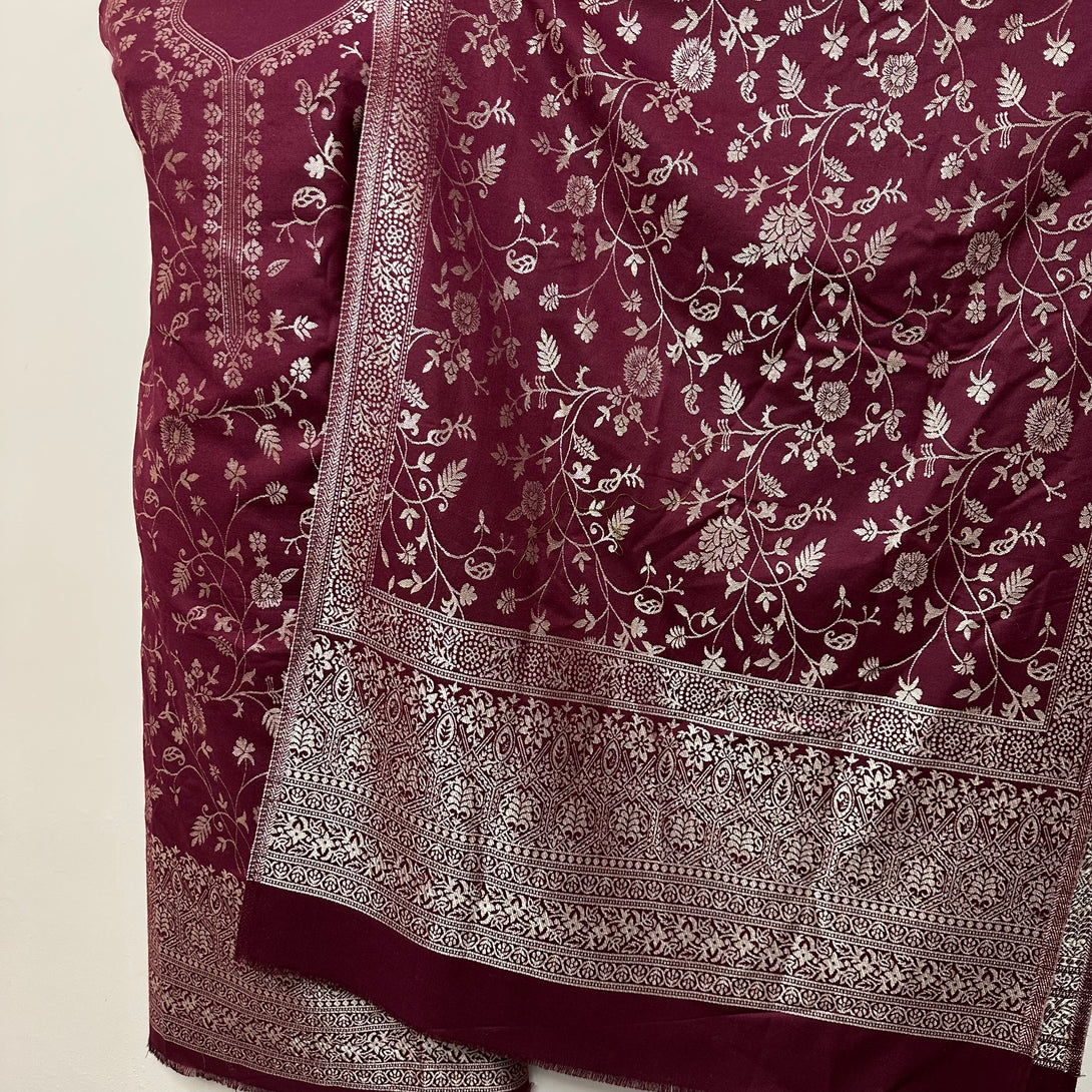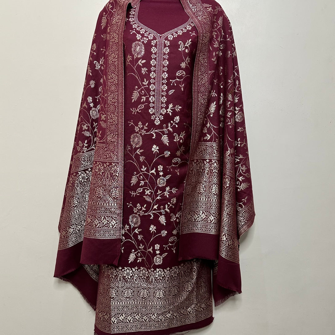 Jayri Women's Woolen Unstitched Kurta & Palazzo Zari Design Suit Material with Shawl/Stole for Winter, Maroon