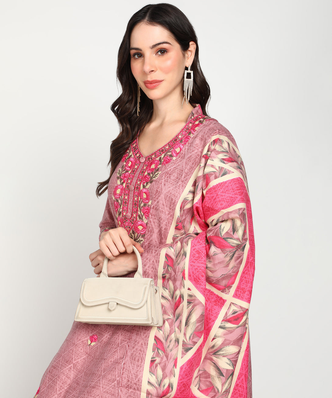 *With Jayri's Women's Woolen Unstitched Printed Suit Material in a pretty Pink tone, you can feel warm and luxurious. Each outfit is enhanced with detailed needlework and includes a matching stole. Designed with winter in mind, this item effortlessly blends refinement and coziness, making it the ideal addition to any stylish and comfortable winter suit.