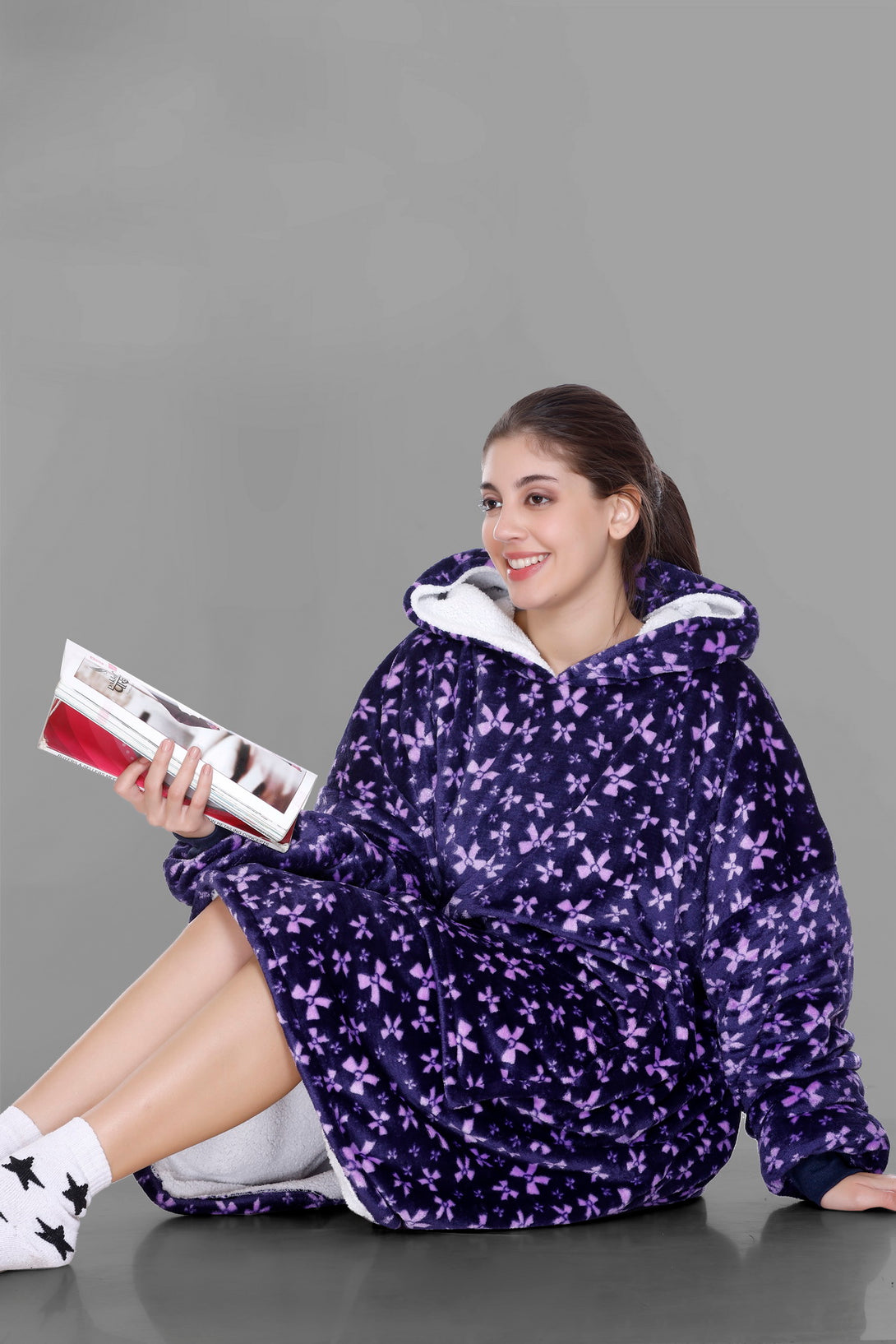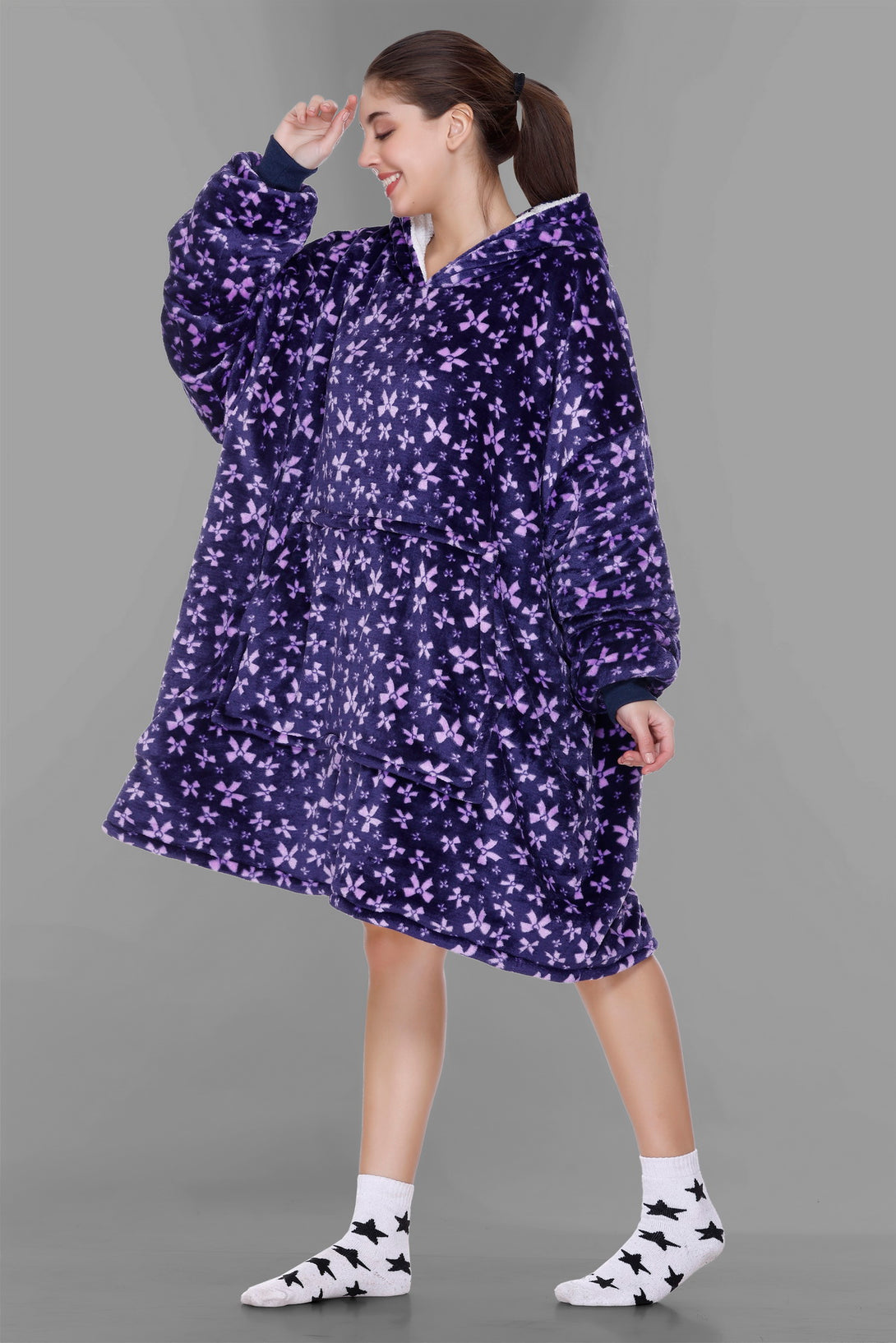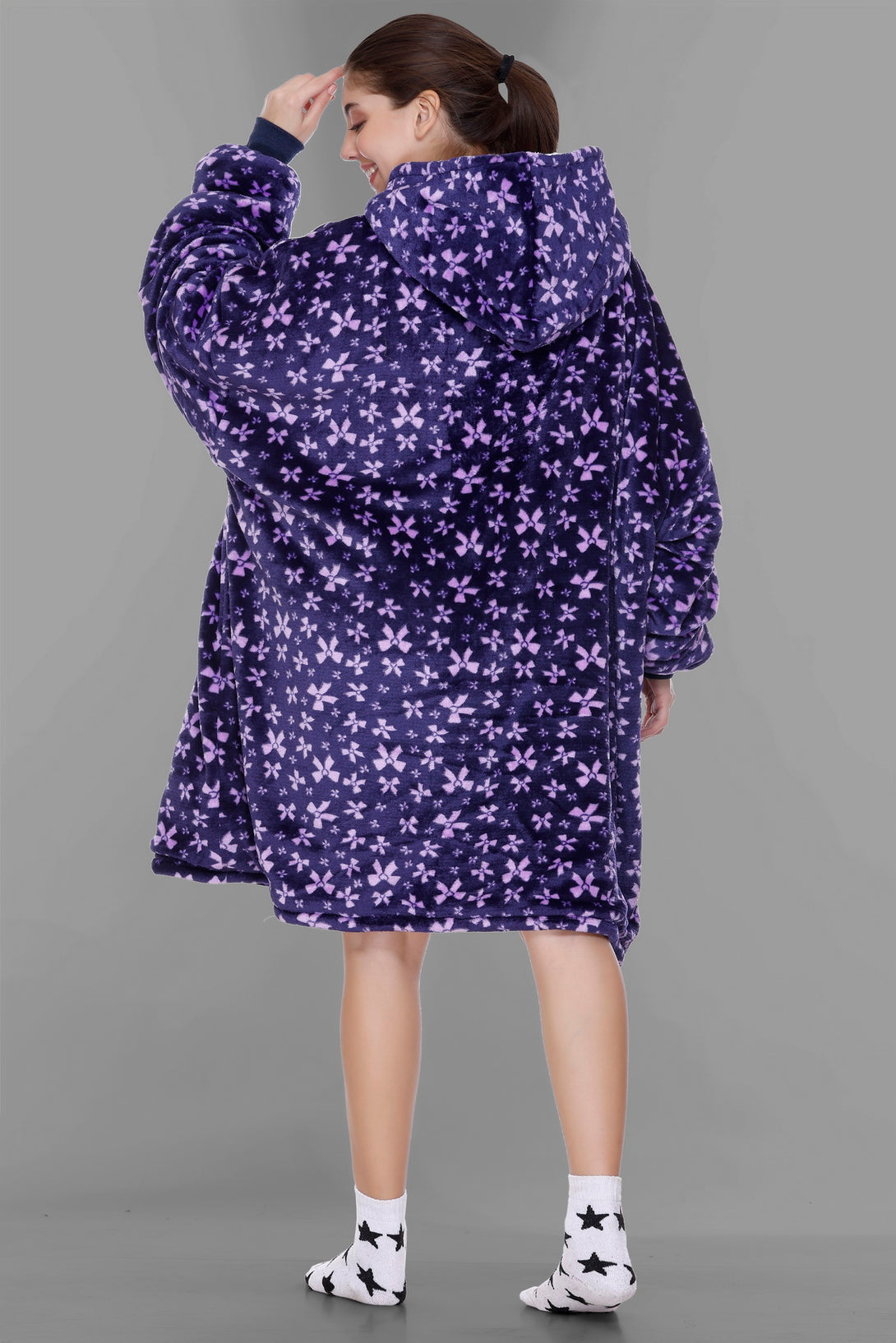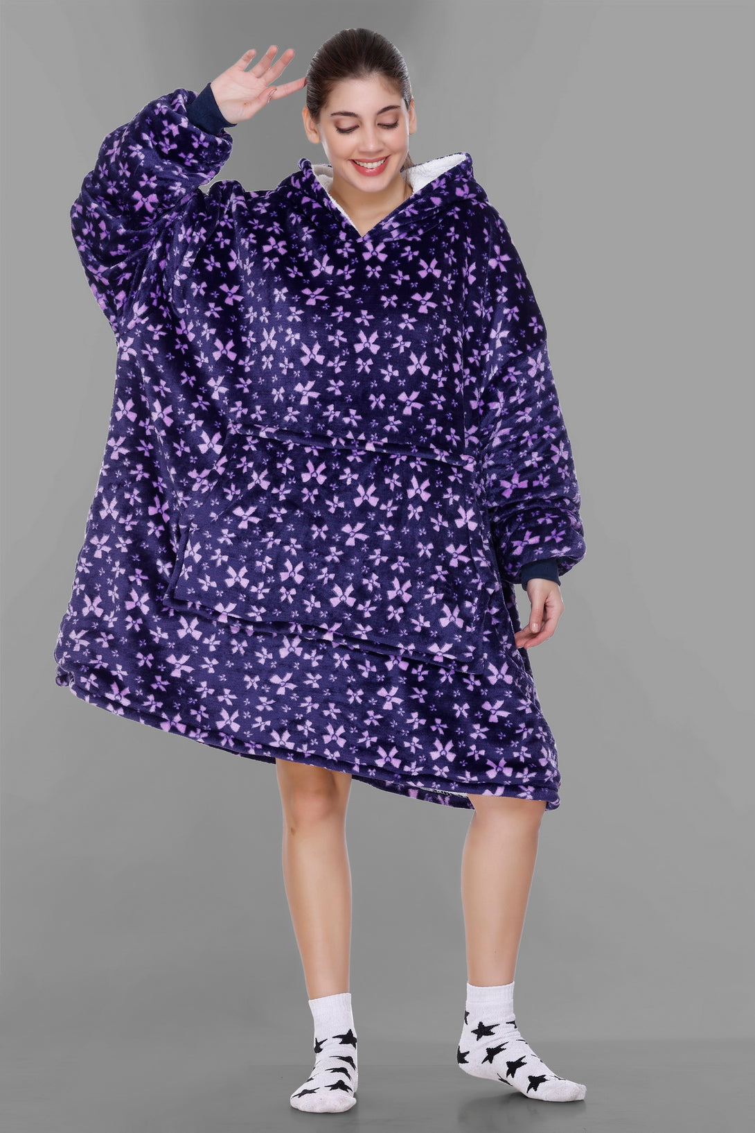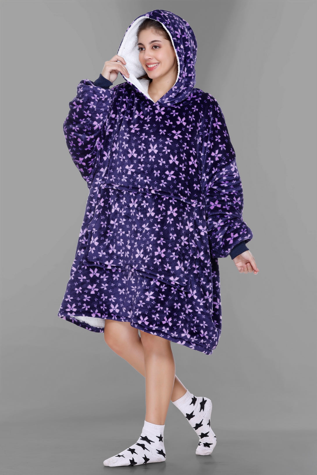 Cozy Fleece Fabric: Our wearable blanket hoodies are crafted from sumptuously soft and high-quality fleece fabric. This plush material ensures that you stay warm, snug, and incredibly comfortable whenever you wear it.