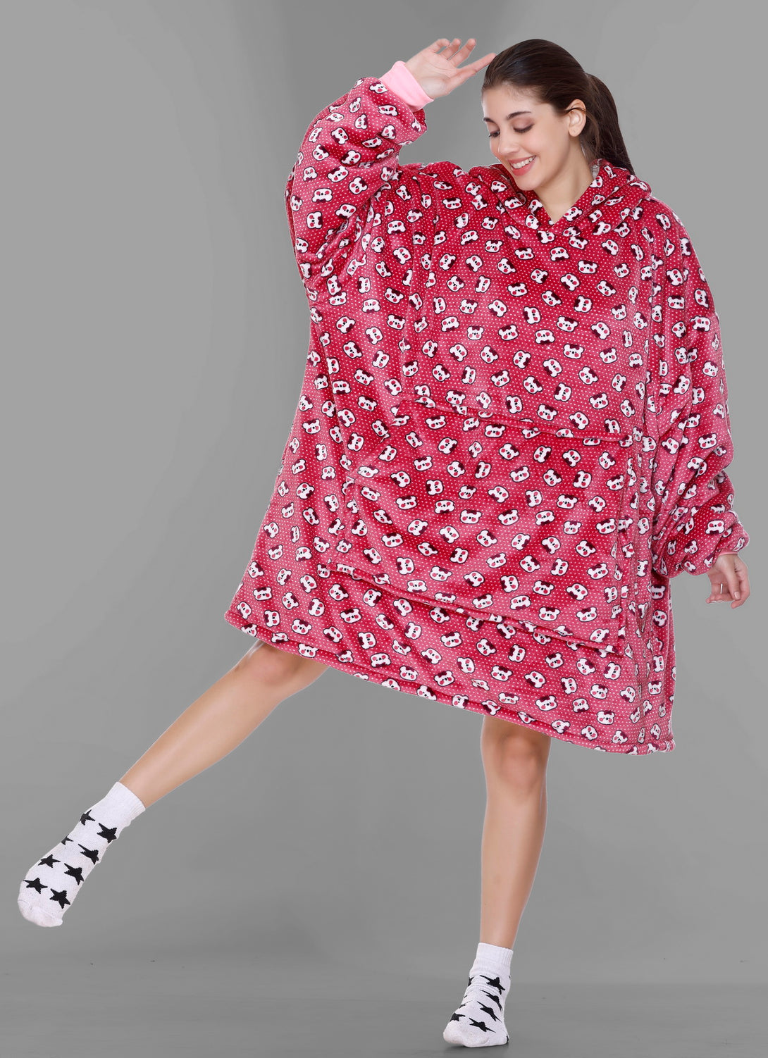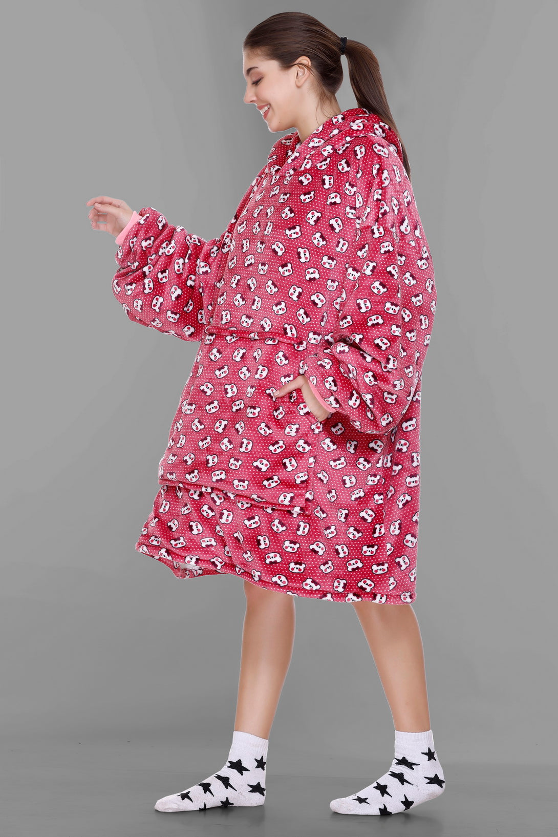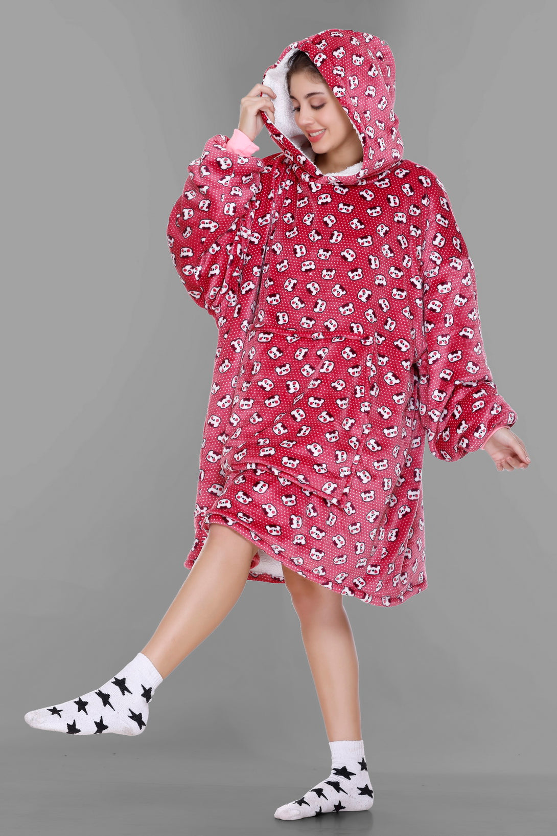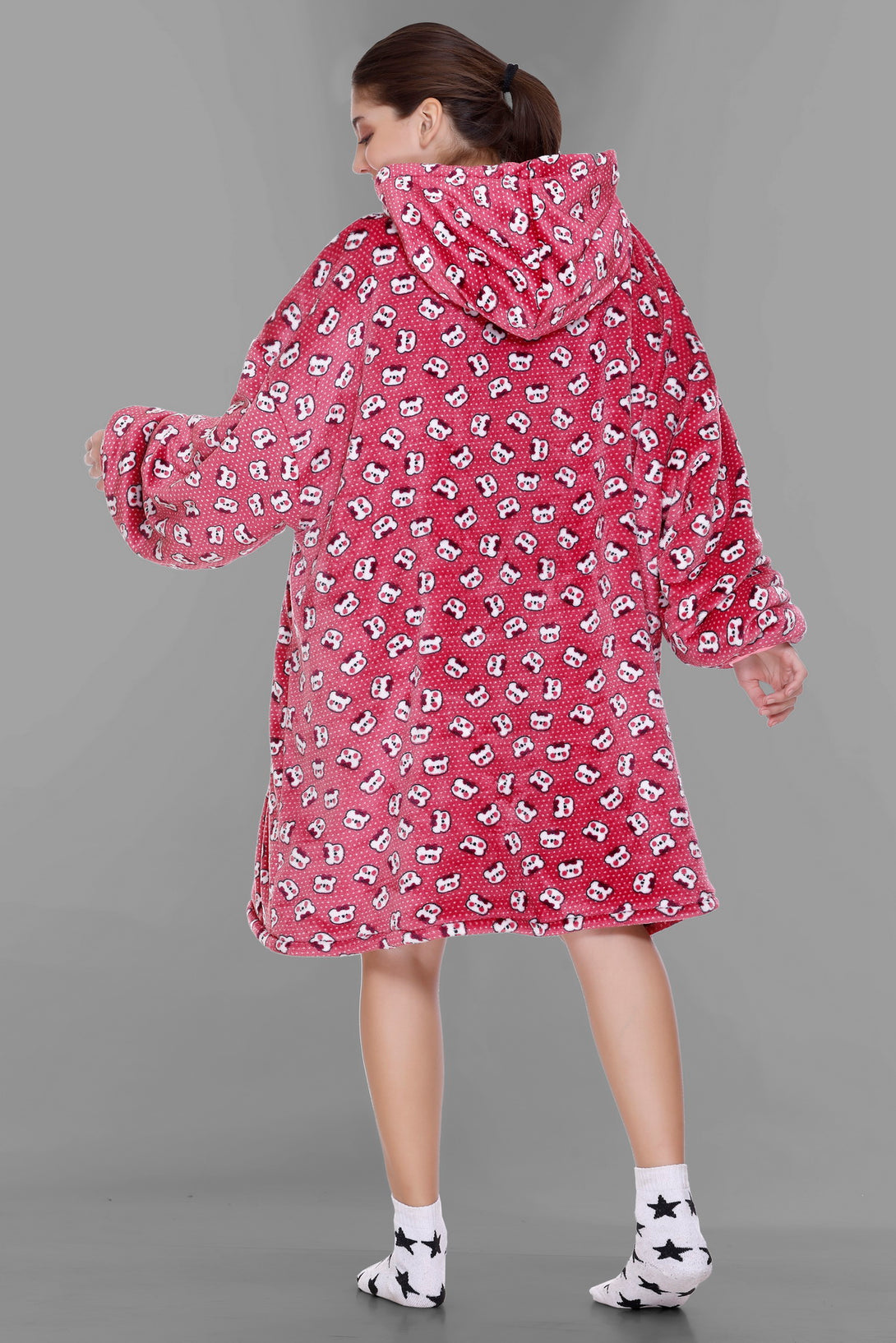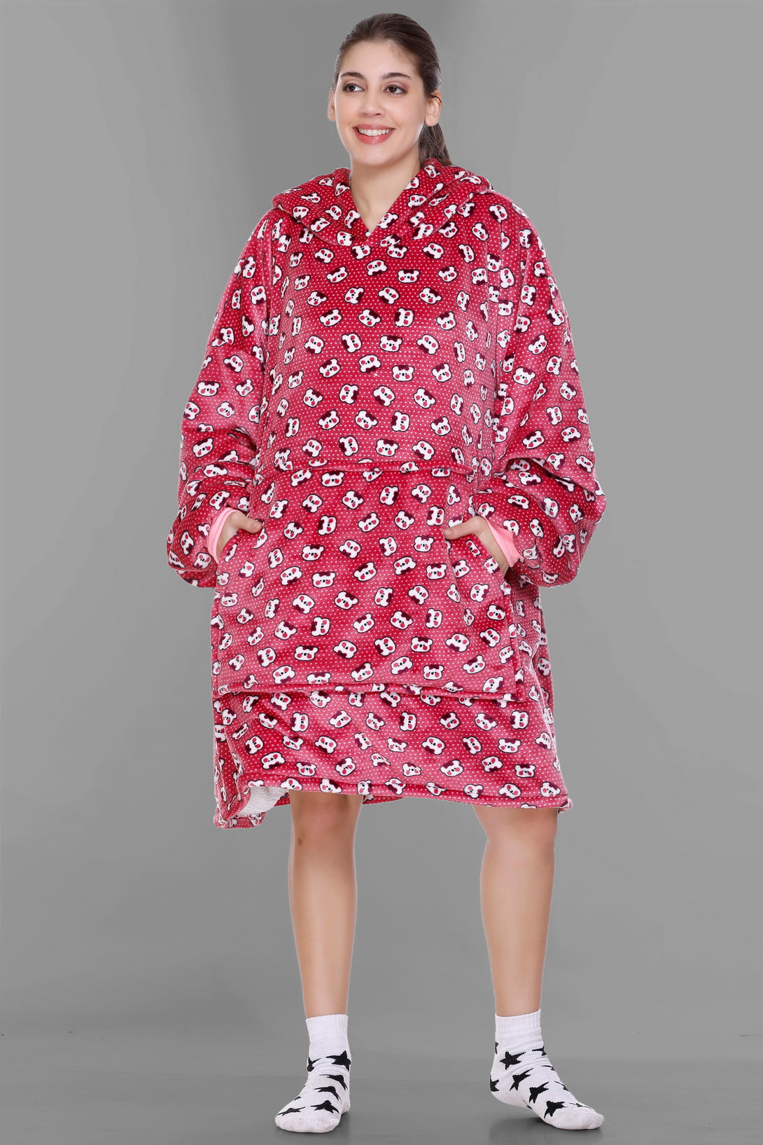 Cozy Fleece Fabric: Our wearable blanket hoodies are crafted from sumptuously soft and high-quality fleece fabric. This plush material ensures that you stay warm, snug, and incredibly comfortable whenever you wear it.